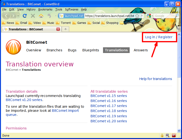 <html><span style=color:red;font-weight:bold>Abandoned.</span></html> Lanuchpad is a third-party website-hosting service, for open source/free software projects. We, therefore, use Launchpad so that users from all over the world, may help translate online BitComet.