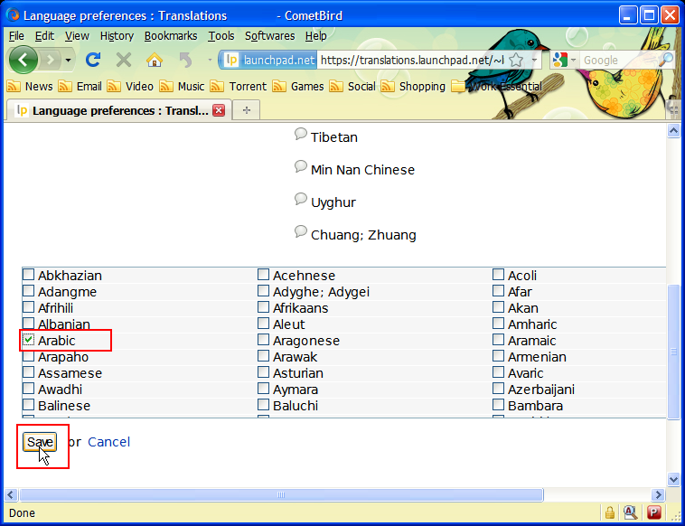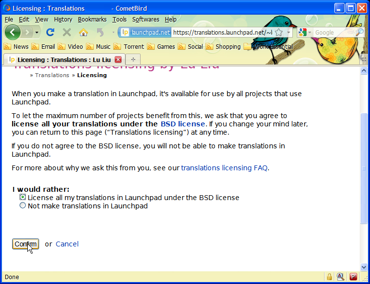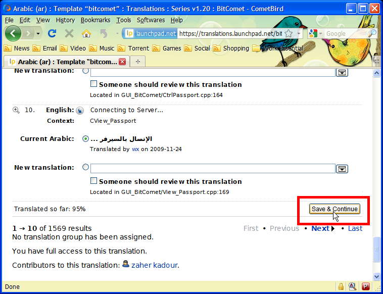 The next instructions pertain to translating online using the web interface of the Launchpad site. Please refer to the next section for off-line translation, instead.